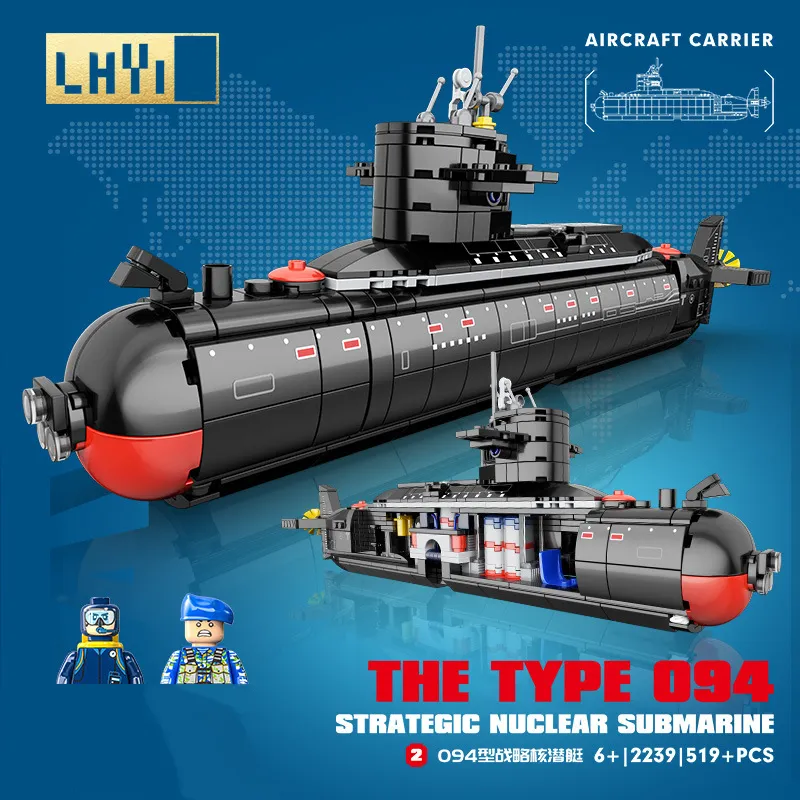 군사 유형 094 전략 핵 잠수함 빌딩 블록 키트, 클래식 해군 함선 전쟁 보트 벽돌 모델, 어린이 장난감 [10,746원]