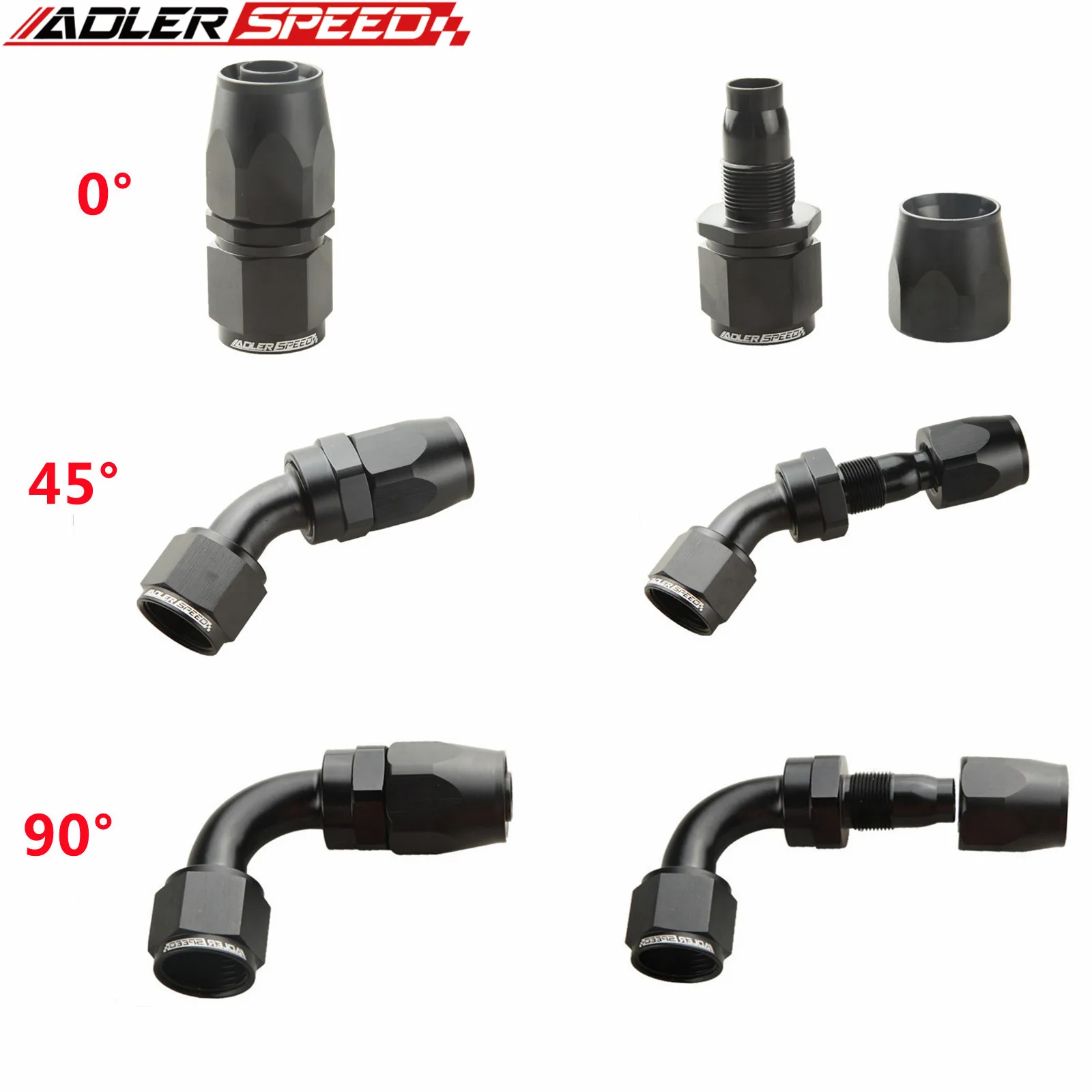 범용 블랙 AN4 AN6 AN8 AN10 AN12 직선 0 ° 45 ° 90 ° 180 ° 오일 연료 회전 호스 엔드 피팅, 오일 호스 엔드 어댑터 키트