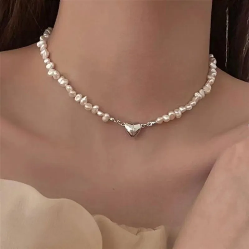 여성용 한국 진주 체인 초커 목걸이, 마그네틱 하트 펜던트, 2023 패션 주얼리, 신부 약혼 선물 title=여성용 한국 진주 체인 초커 목걸이, 마그네틱 하트 펜던트, 2023 패션 주얼리, 신부 약혼 선물