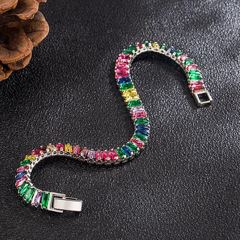고귀한 925 스털링 실버 팔찌 체인, 럭셔리 컬러 크리스탈 핸드 쥬얼리, 여성용 매력 결혼 선물 파티, 18cm