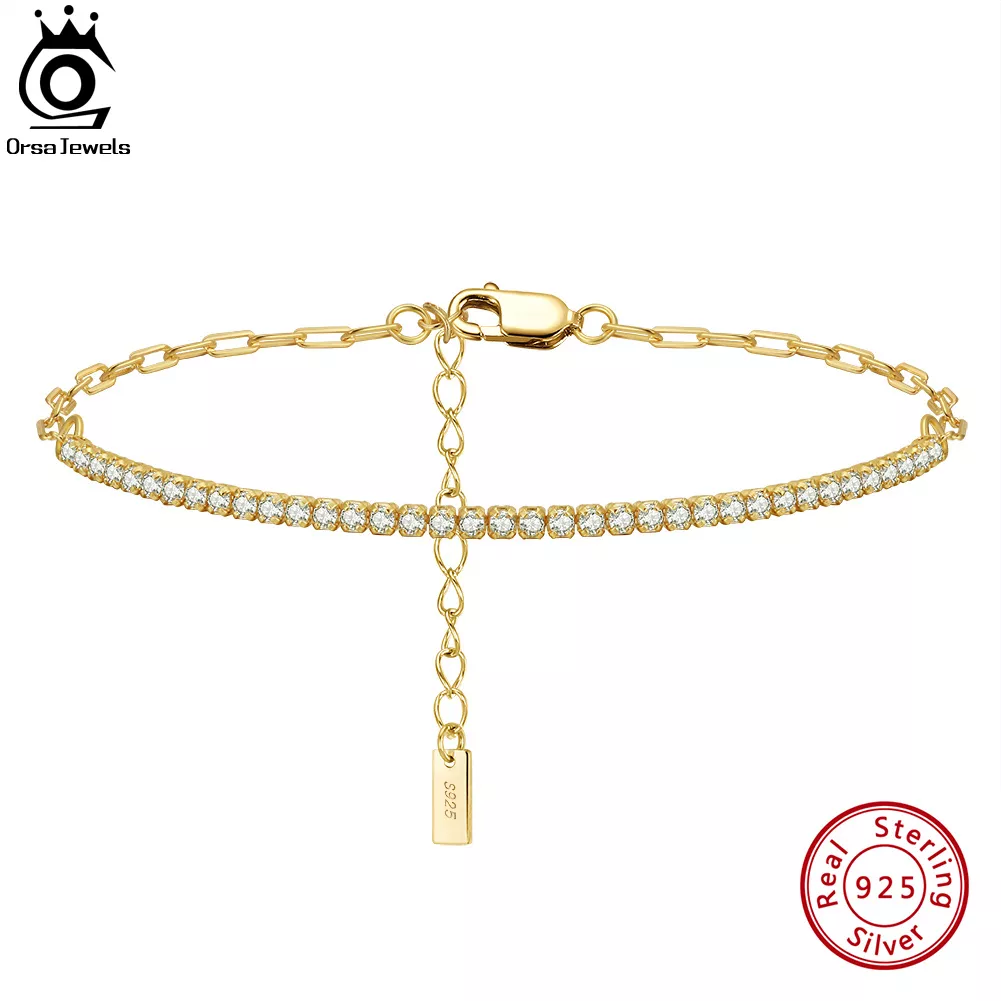 ORSA JEWELS 여성용 14K 골드 도금 페이퍼 클립 체인 테니스 팔찌, 925 스털링 실버 수제 팔찌, 주얼리 SB141
