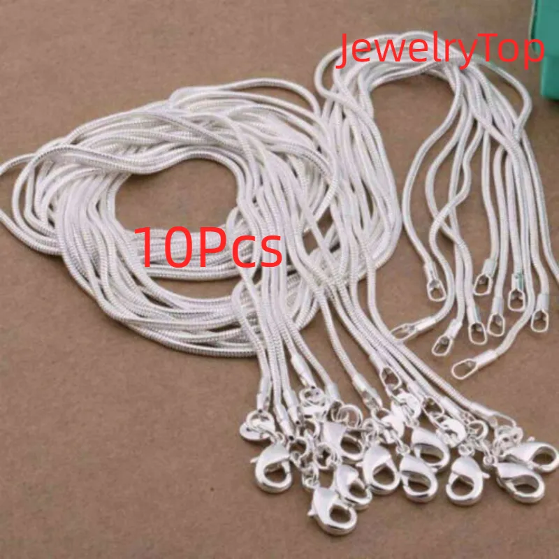JewelryTop-40-75cm 925 스털링 실버 1MM 스네이크 체인 목걸이, 여성 남성 패션 파티 웨딩 주얼리 선물, 10 피스