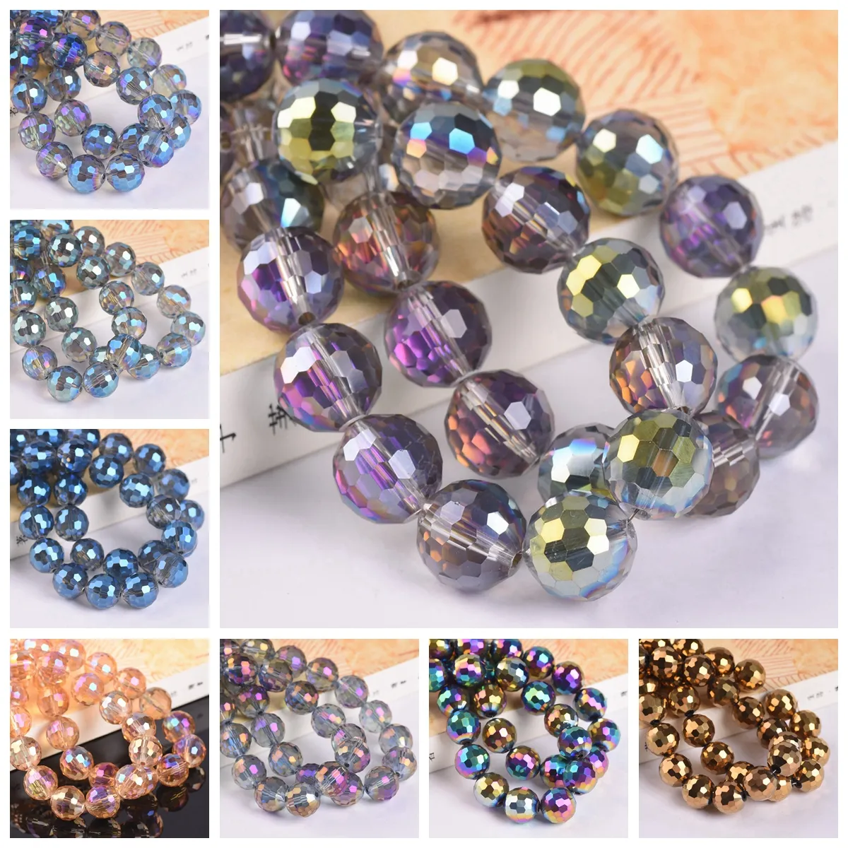 다채로운 도금 라운드 96 면 컷 디스코 볼, 6mm, 8mm, 10mm, 12mm 면 크리스탈 유리, 느슨한 스페이서 비즈, 쥬얼리 제작 DIY