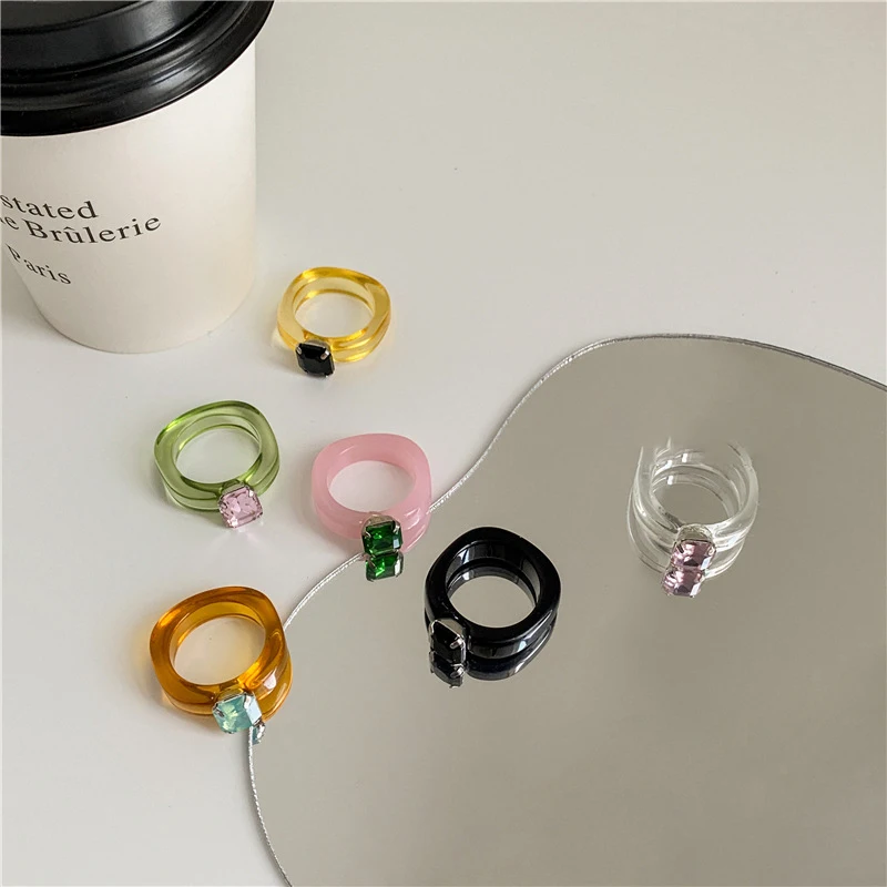 불규칙한 기하학적 투명 크리스탈 라인스톤 지르콘 라운드 링 여성용, 반짝이는 보석 액세서리, 럭셔리 패션