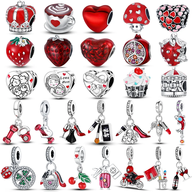 100% 925 스털링 실버 레드 컬러 시리즈 하트 모양 비즈 참, 판도라 925 정품 팔찌, 행운의 주얼리 선물, 신제품 구경하러가기