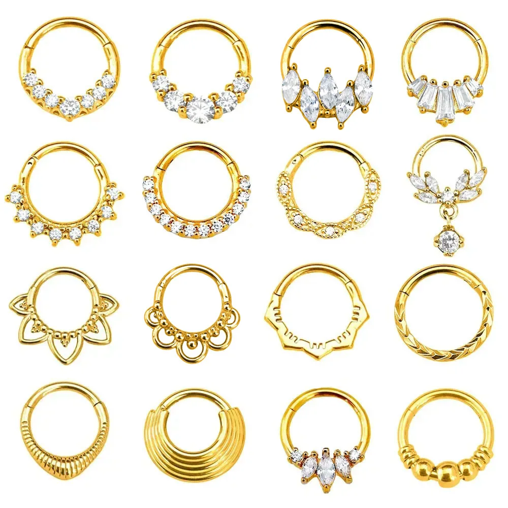 스틸 지르콘 힌지 세그먼트 코 격막 클리커 링 라운드 귀걸이 고리, 귀 이주 나선 피어싱 쥬얼리, 1... 크리스탈 CZ 후프, 이주 연골 나선 스터드 귀걸이 , 소라 룩 다이스 로브 피어싱 쥬얼리, 1PC 정상가...