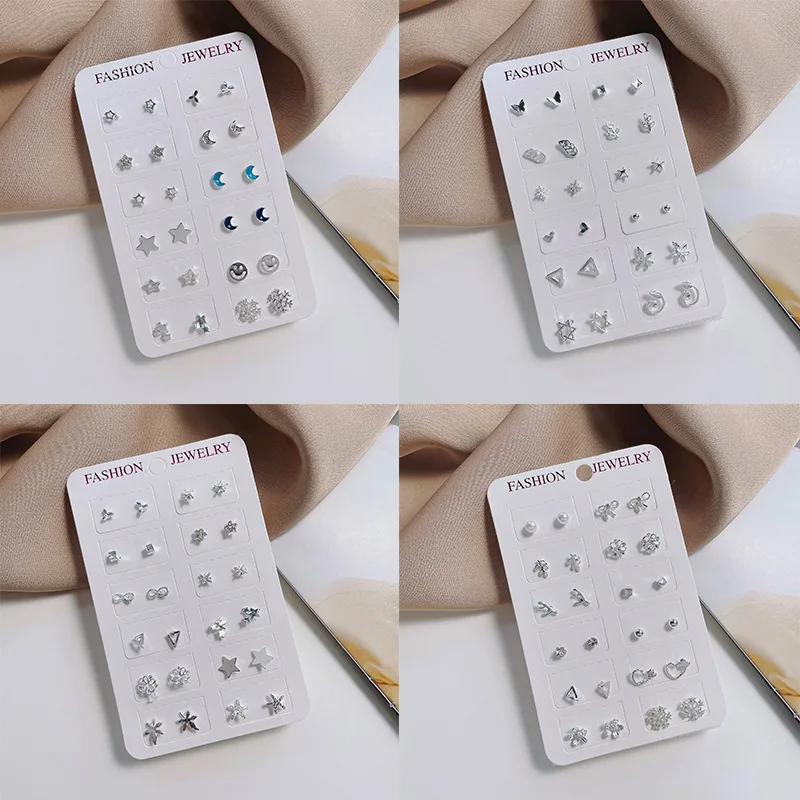 만화 스타 문 미니 스털링 스테인레스 스틸 기하학 실버 컬러 귀걸이 여자 유행 개인 보석, 24/12 쌍 [0원]