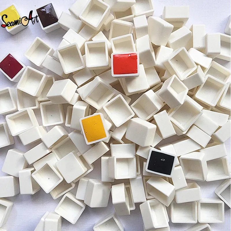 6/12/24/36/48pcs 빈 전체/하프 팬 화이트 하프 팬 페인트 플라스틱 수채화 페인트 그리드 하프 팬 아티스트 팔레트 아트 용품