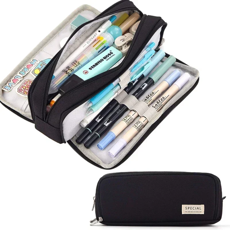 카와이 연필 케이스 대용량 캔버스 펜 가방 소녀 멀티 레이어 상자 단색 귀여운 학교 용품 한국어 문구 [7,609원]