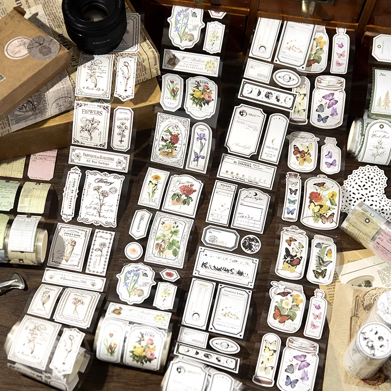 Yoofun 레트로 천연 식물 꽃 티켓 스티커 테이프, 빈티지 스크랩북 장식, 마스킹 테이프 스티커, 7.5x200cm 구경하러가기