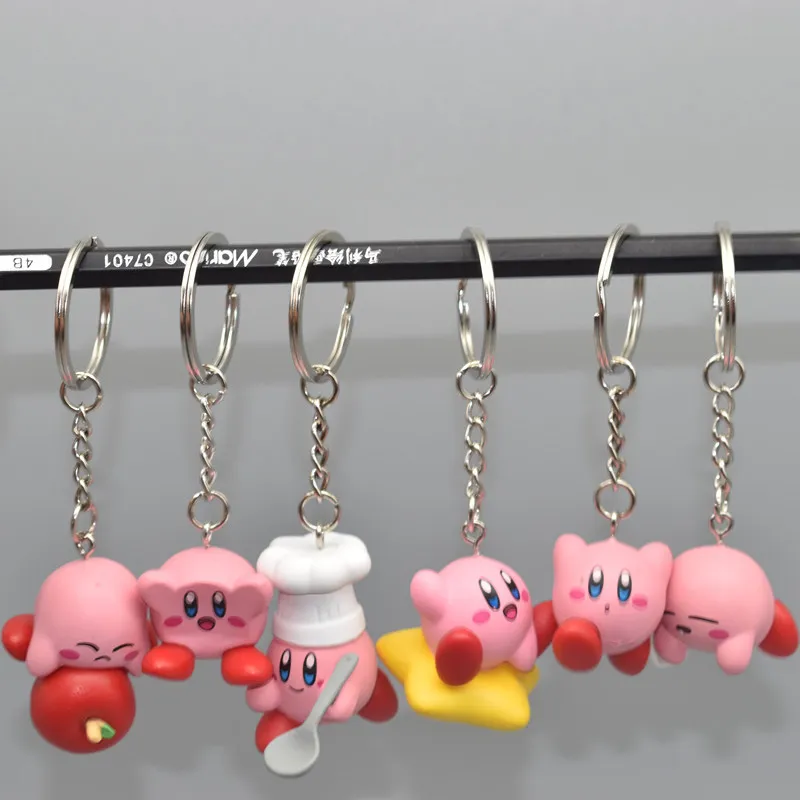 커비 애니메이션 게임 키체인 펜던트, 귀여운 만화 핑크 커비 와들, 디 두 액션 피규어, 미니 인형 장난감, 어린이 생일 선물