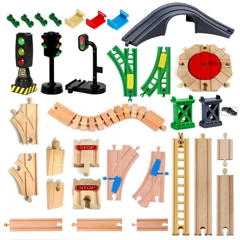 나무 트랙 철도 장난감 너도밤나무 기차 트랙 액세서리 적합, 모든 브랜드 트랙, 어린이 교육 완구