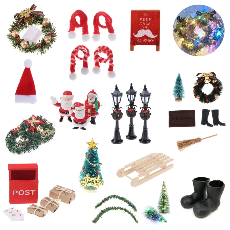 미니 크리스마스 화환 화환 크리스마스 모자 스카프 인형 집 장식 미니어처 크리스마스 트리 어린이를위한 최고의 선물 가구 완구
