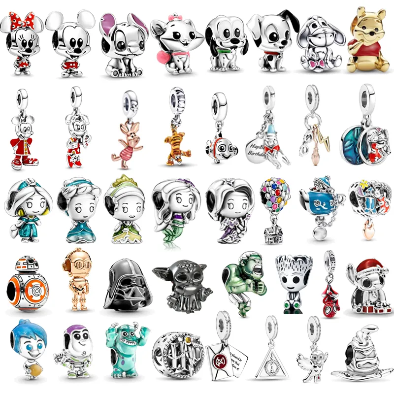 디즈니 스티치 합금 펜던트 부적, 925 스털링 실버, 스타워즈, 마블 비즈 부적 팔찌 목걸이, DIY 주얼리 [1,229원]