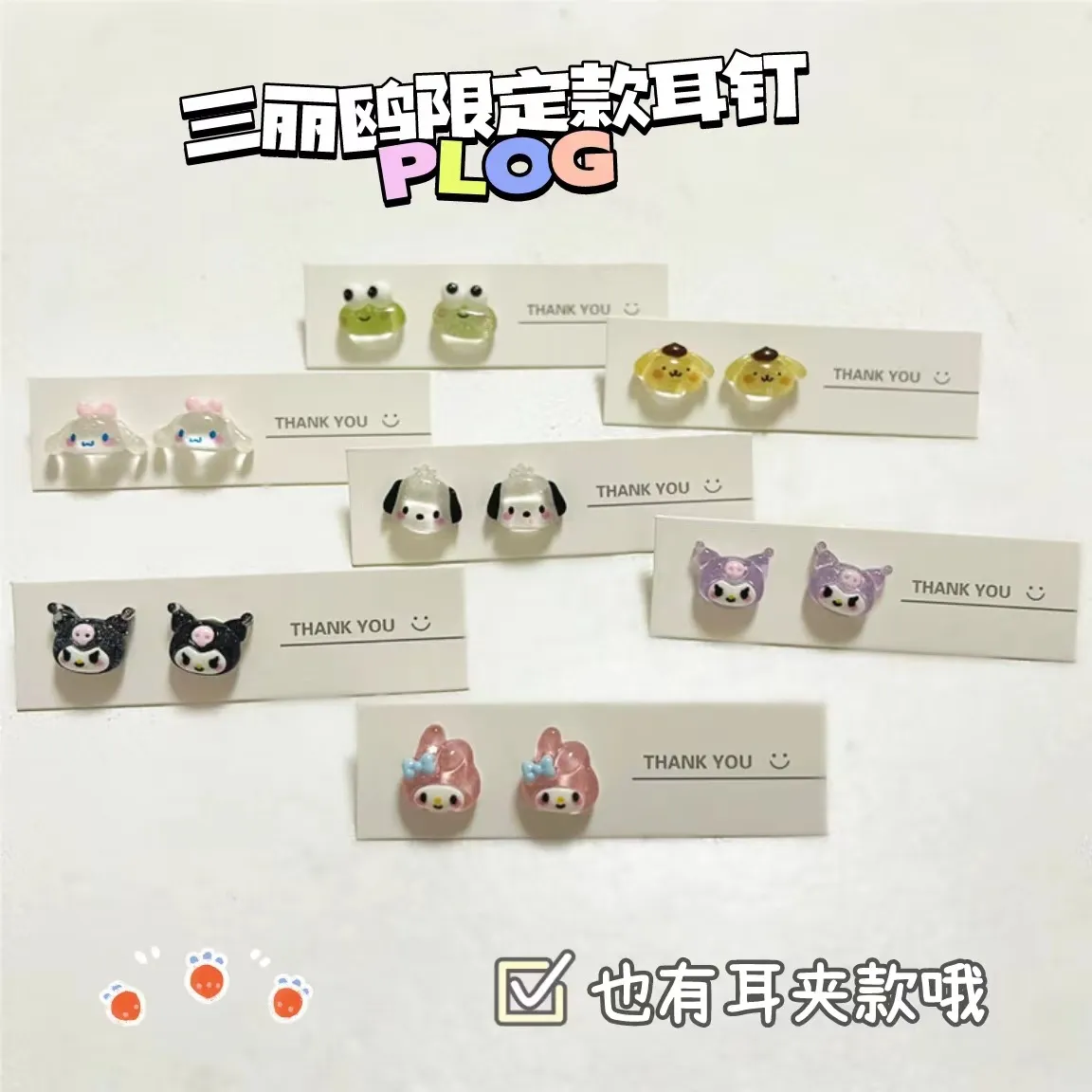 산리오 애니메이션 헬로 키티 트윙클 귀걸이, 귀여운 쿠로미 멜로디, 스위트 걸 하트 만화, 포차코 투명 귀걸이, 명절 선물 구경하러가기