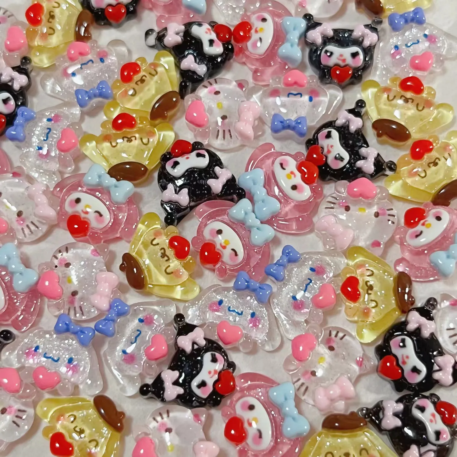 Sanrioed 레진 참, 네일 아트 장식, 카와이 애니메이션 모델, 전화 케이스, 헤어 클립 장식, DIY 액세서리, 50 개, 30 개 도매