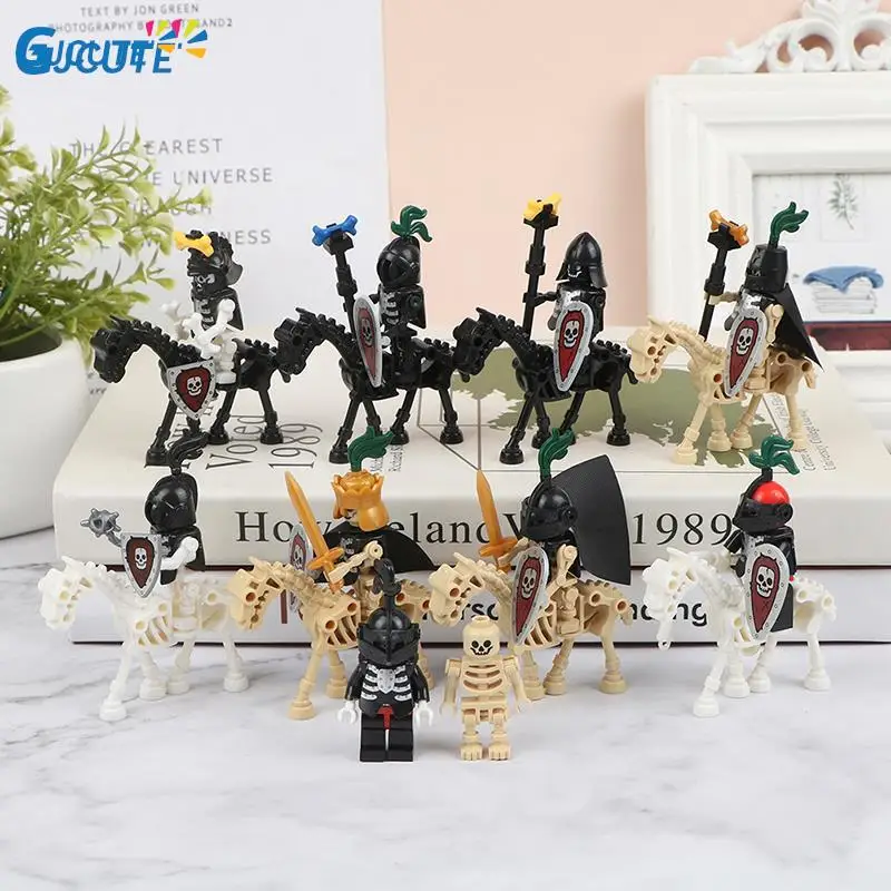 중세 성 기사 피규어, 십자군 로마 군인, 스파르타쿠스 전사, 글라디투스 해골, 말 방패 빌딩 블록 장난감