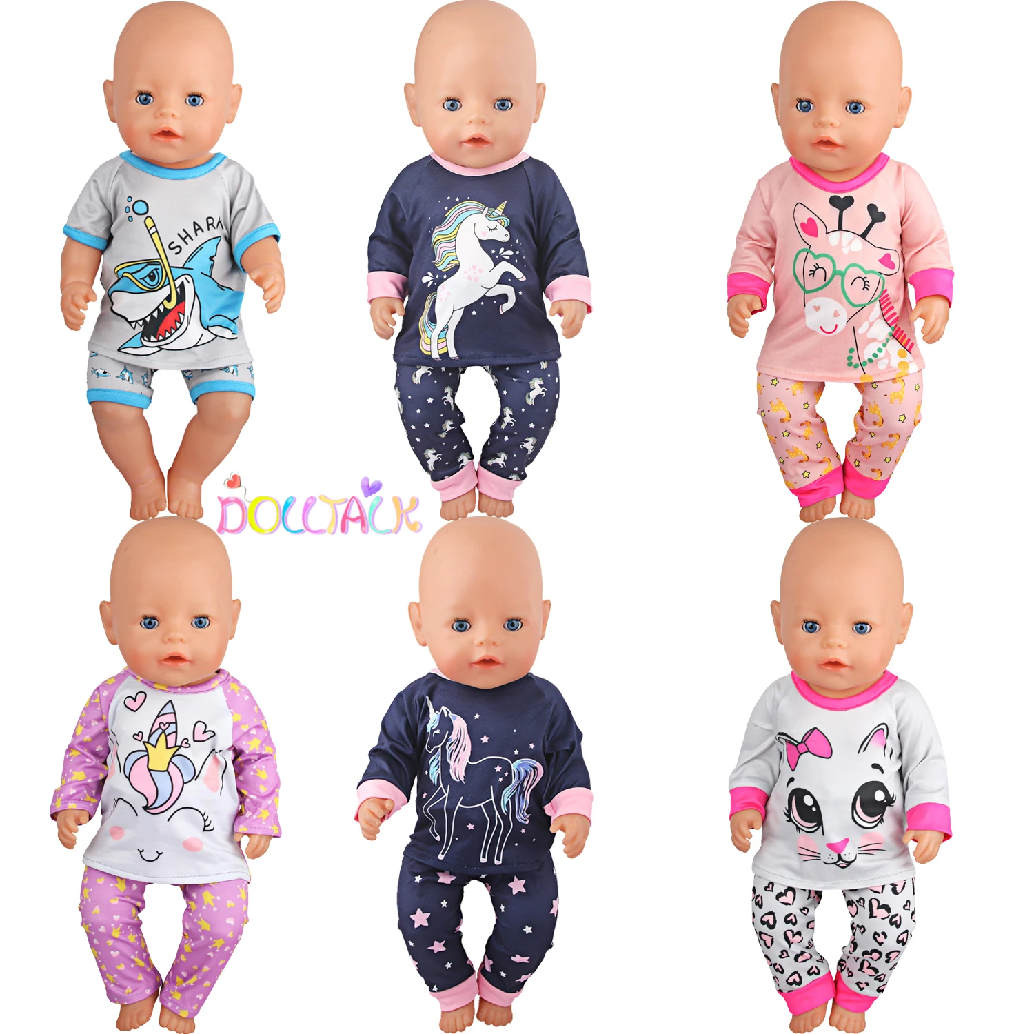 귀여운 고양이 동물 상어 티셔츠 + 반바지 의류 세트 잠옷 미국 18 인치 소녀 인형 및 43cm, 새로 태어난 아기 장난감 인형에 적합