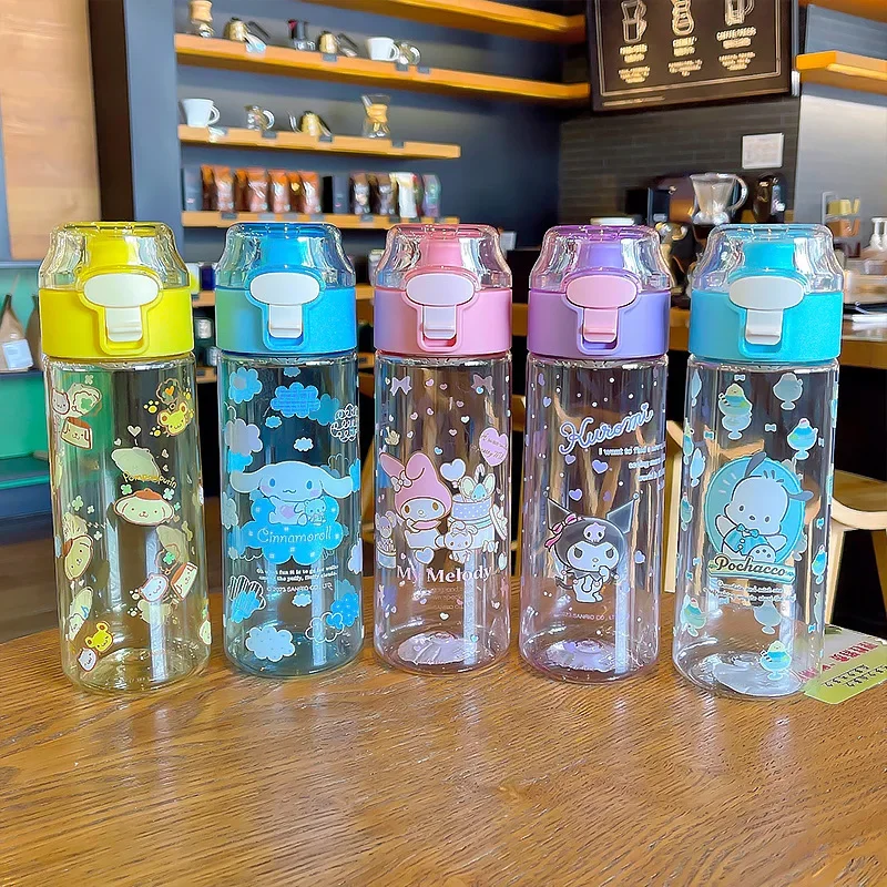 귀여운 플라스틱 물컵, 시나모롤 애니메이션 쿠로미스 포차코스, 마이 멜로디 워터병, 어린이 만화 장난감 선물, 550ml