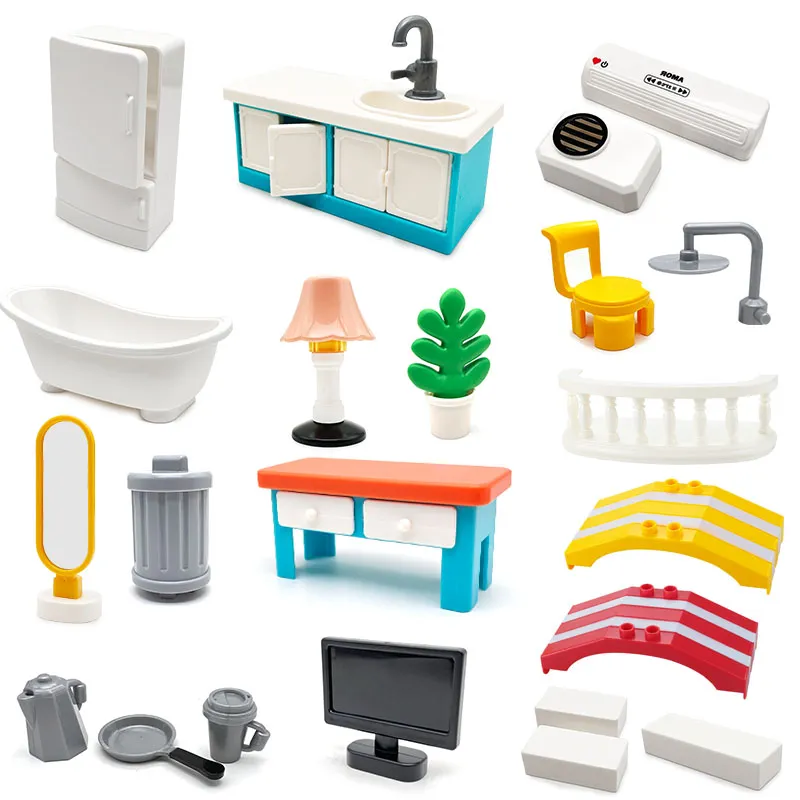 조립 미니 가구 여아용 큰 빌딩 블록, 하우스 장난감, 듀플로 액세서리, 교육용 선물 호환