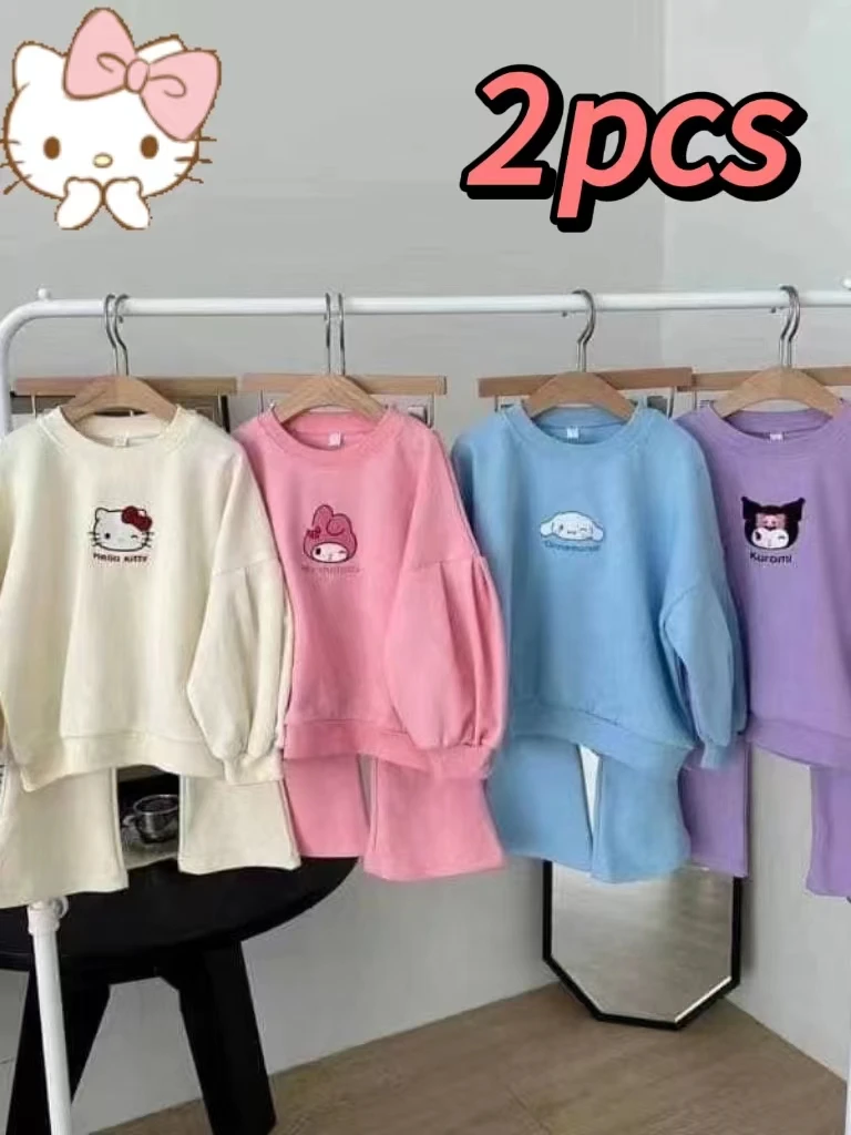 시나모롤 어린이 운동복, 귀여운 애니메이션 산리오 헬로 키티 캐주얼 맨투맨 바지, 귀여운 소녀 만화 의류, 2 개 세트 구경하러가기