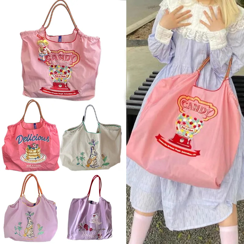 소녀용 카와이 볼 체인 캔버스 가방 핸드백, 쇼핑 옥스포드 가방, 숄더 나일론 가방, 자수 가방, 소녀 선물, 대용량 구경하러가기