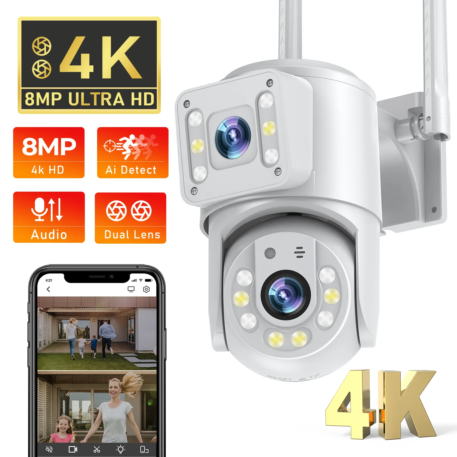 듀얼 렌즈 PTZ Wifi IP 캠 풀 컬러 나이트 비전 보안 감시 카메라, 4 개 스크린, 사람 감지 오디오 추적, 8MP
