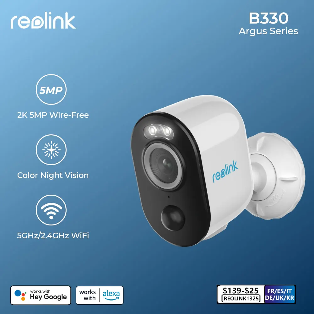 Reolink Argus B330 배터리 실외 카메라 2.4G/5Ghz WiFi 카메라 5MP 사람/자동차 감지 양방향 오디오…
