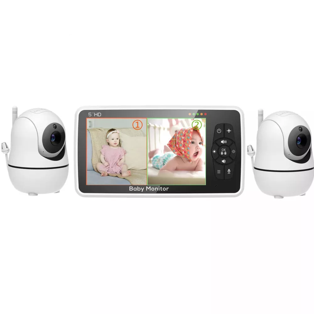 5 인치 비디오 베이비 모니터 카메라 및 오디오 2 개 포함, 나이트 비전, 4 배 줌, 1000ft 범위 양방향 오디오 온도 센서 자장가