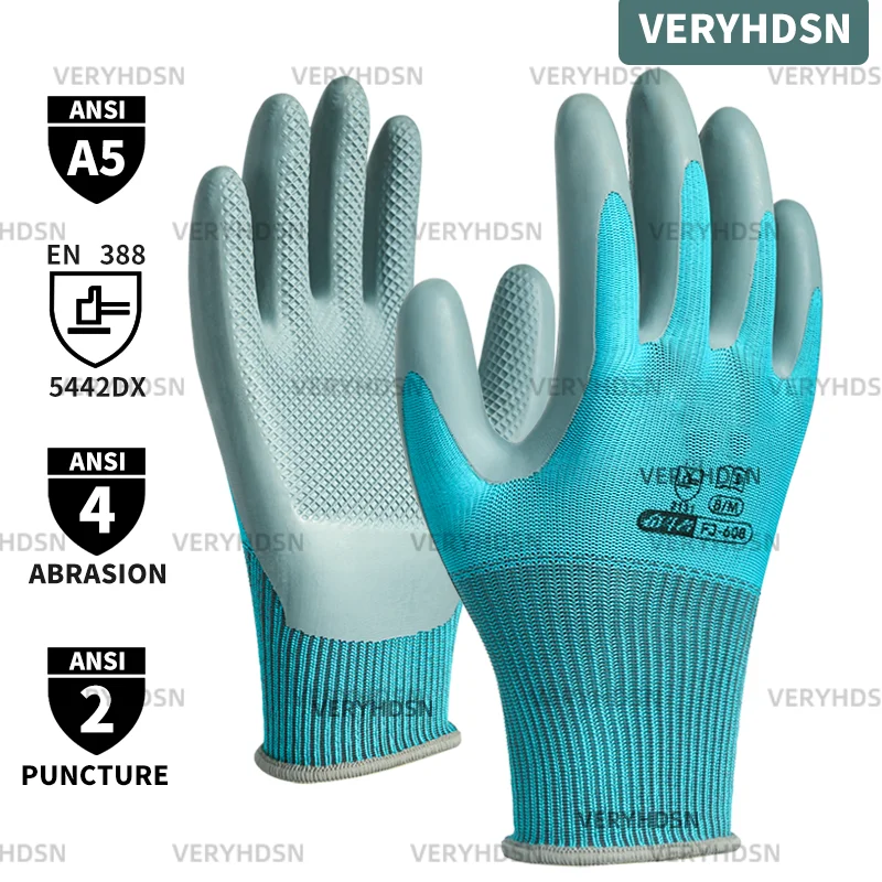 남녀공용 안전 작업 장갑 코팅, 내구성 및 통기성 다목적 그립 니트릴 장갑 고무, 절단 방지 니트 손목 커프, 2 쌍