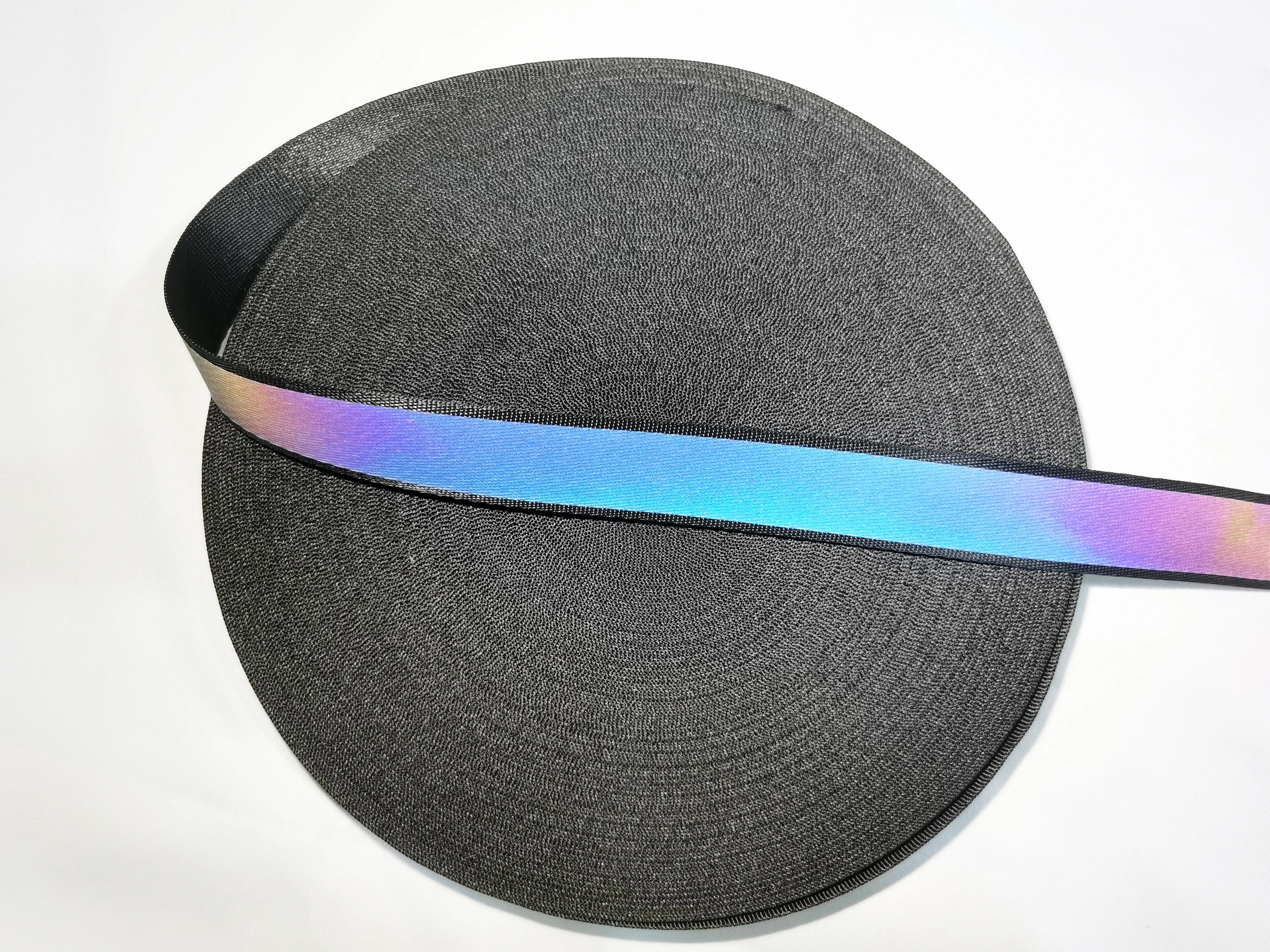 하이 브라이트 블랙 리본 레인보우 반사 웨빙, 의류 봉제, 의류 액세서리 가방, 어깨 스트랩, 5 m, 2.5cm title=하이 브라이트 블랙 리본 레인보우 반사 웨빙, 의류 봉제, 의류 액세서리 가방, 어깨 스트랩, 5 m, 2.5cm