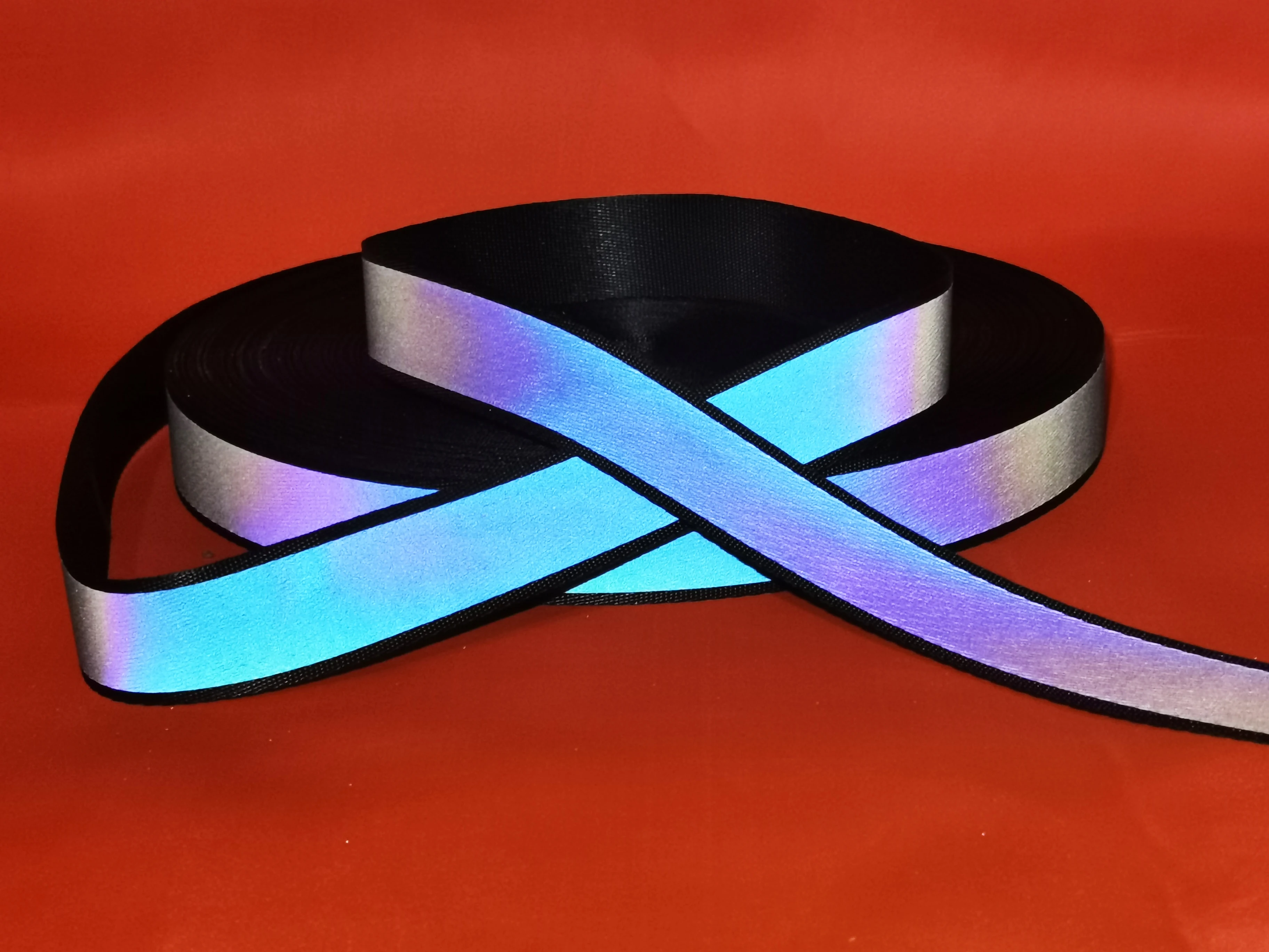 하이 브라이트 블랙 리본 레인보우 반사 웨빙, 의류 봉제, 의류 액세서리 가방, 어깨 스트랩, 5 m, 2.5cm