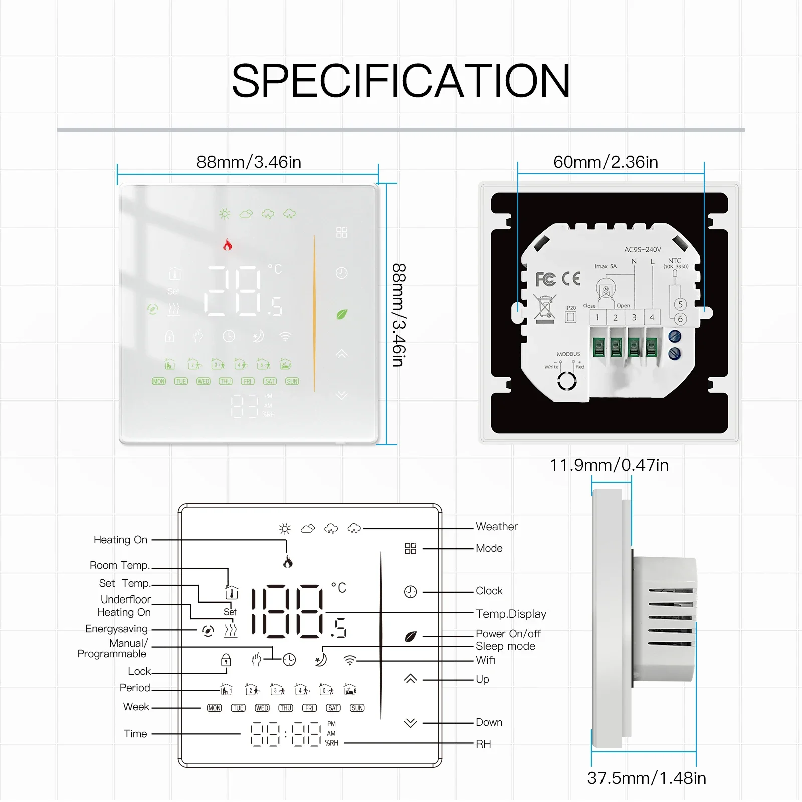 온도 조절기 WiFi 무선 실내 온도 컨트롤러 물/전기 바닥 난방 가스 보일러 습도 Tuya alexa와 함께 작동 title=온도 조절기 WiFi 무선 실내 온도 컨트롤러 물/전기 바닥 난방 가스 보일러 습도 Tuya alexa와 함께 작동