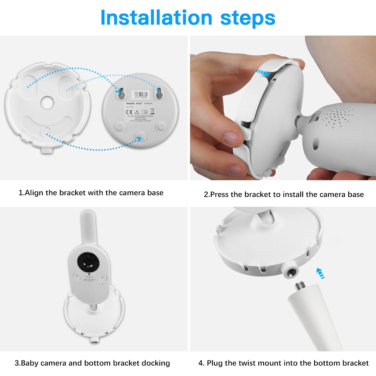 필립스 아벤트 베이비 모니터 카메라용 유연한 트위스트 마운트 브래킷, 유아용 침대 선반 또는 가구에 부착