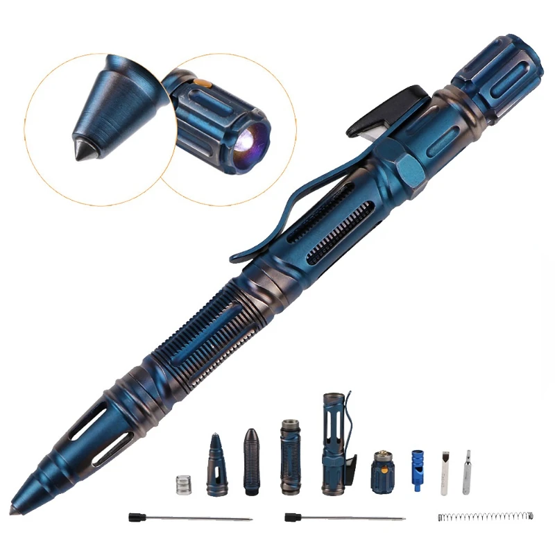 7In1 야외 생존 전술 펜 다기능 자기 방어, 비상 Led 조명 휘슬 유리 차단기 포함 [15,801원]