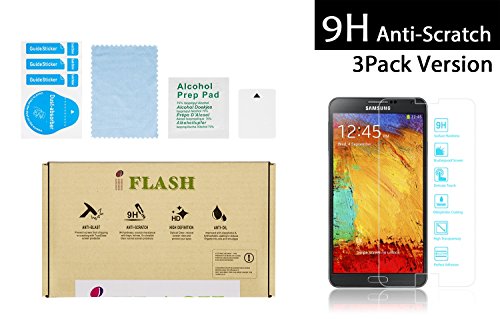 iFlash® 3 Pack of Premium Tempered Glass Screen Protector For Samsung Galaxy Note 3 / Note III / N9000 - Transparent Crystal Clear / 2.5D Rounded Edges / 9H Hardness / Scratch Proof / Bubble Free / Ol 해당 상품 바로 가기
