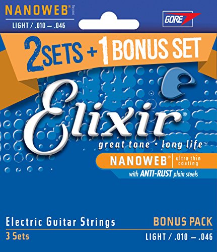 Elixir® Strings 16542 Electric Guitar Strings with NANOWEB® Coating, 3 Pack, Light (.010-.046) 해당 상품 바로 가기