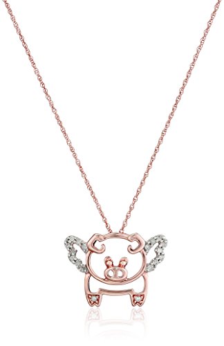 10k Rose Gold Diamond Flying Pig Pendant Necklace (1/10 cttw, I-J Color, I2-I3 Clarity) 해당 상품 바로 가기