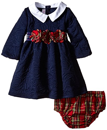 Bonnie Baby Baby-Girls Infant Quilted Dress with Peter Pan Collar, Nav…