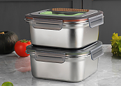 SMABAT 스테인리스 밀폐용기 2P세트 인덕션 스텐용기 2000ML 냉장고 김치통 반찬통 다용도 스테인리스 보관용기 세트, 그린 밀폐용기, 2개[10,500원]