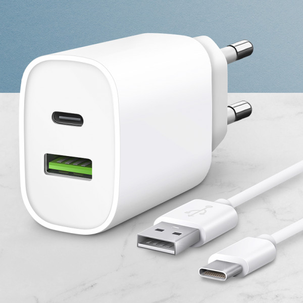 홈플래닛 PD 20W 2포트 고속충전기 + C타입 케이블 1.5m 세트( 애플 아이폰15 호환), 화이트, 1개[9,790원]