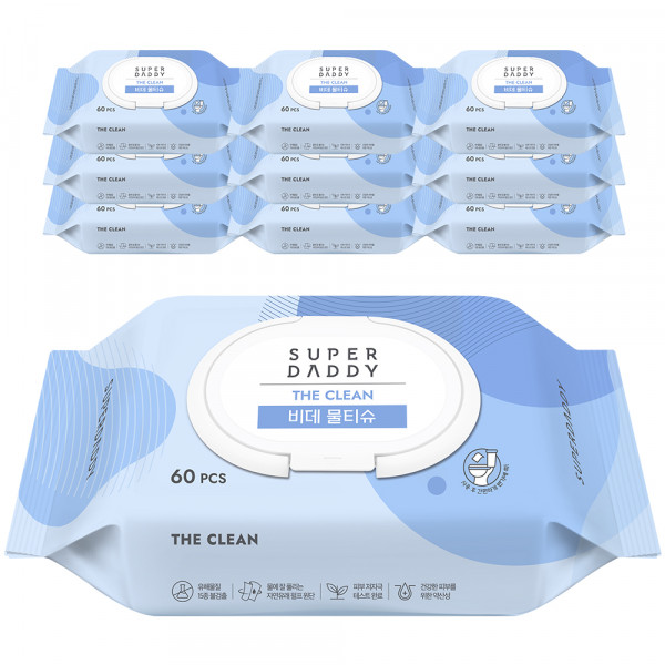 슈퍼대디 더클린 비데 물티슈 캡형, 60g, 60개입, 10개[11,920원]