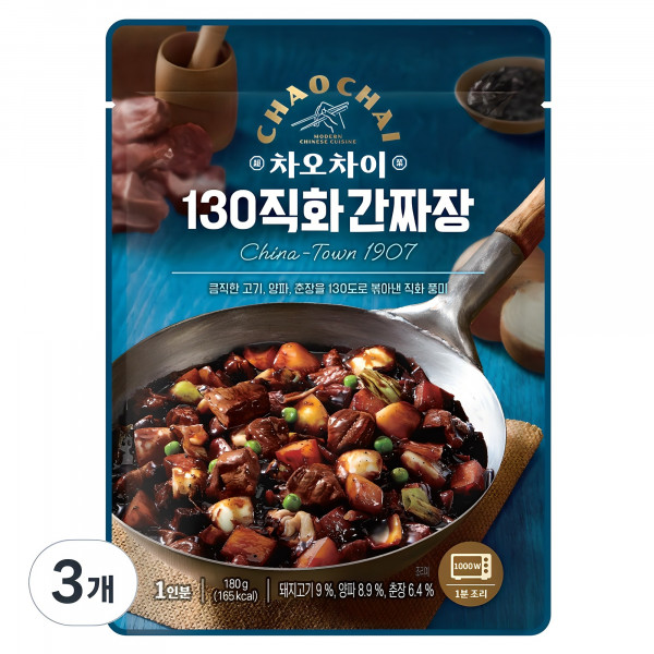 오늘 소개드릴 제품은 **차오차이 130 직화 간짜장(180g × 3개)**입니다. 고온 직화로 볶아내 깊고 진한 불향이 살아있어 마치 중식당에서 바로 나온 듯한 맛을 경험할 수 있습니다. * 1인분 포장으로 간편...