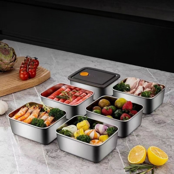 BLOWFISHFUGU 스텐 도시락 스테인리스 도시락 스테인리스 수납함, 스텐 직사각 밀폐용기, 6개