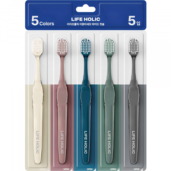 라이프홀릭 이중미세모 와이드 칫솔, 5개입, 1세트