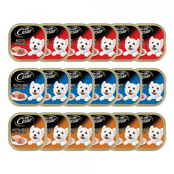 시저 1세 이상 강아지 버라이어티팩 주식캔 쇠고기 3종, 100g, 1세트, 소[17,770원]