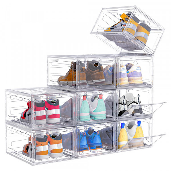 Ruesious 투명 플라스틱 신발 정리함 아크릴 신발 케이스, 9개, 화이트 구경하러가기