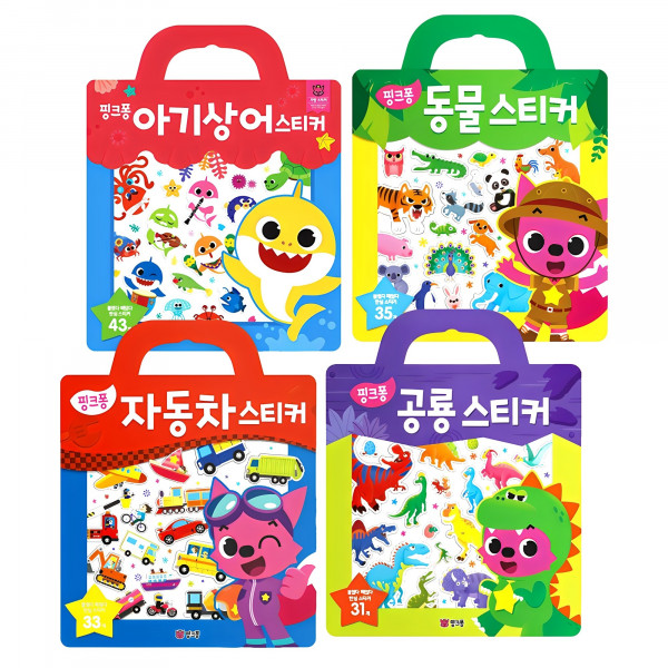 핑크퐁 가방 스티커 BEST 4종 세트 : 아기상어 스티커+동물 스티커+자동차 스티커+공룡 스티커 뗏다 붙였다! 다양한 바다 동물 이름을 배워요 핑크퐁 가방 스티커 BEST 4종 세트 : 아기상어 스티커+동물...