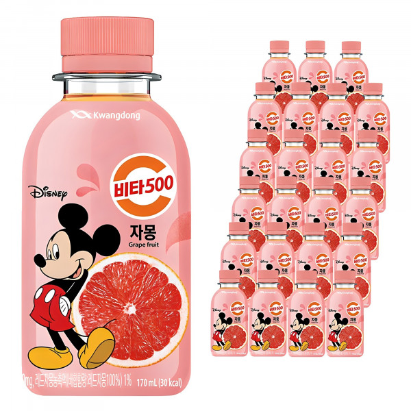 한박스에 24개나 들어있는데 170ml의 컴팩트한 사이즈라 들고다니기도 편해 금방 먹을 수 있을 것 같았어요! 자몽맛 음료는 어디에나 흔하지만 비타500 자몽맛은 항산화작용으로 세포를 보호해주는 비타민C...