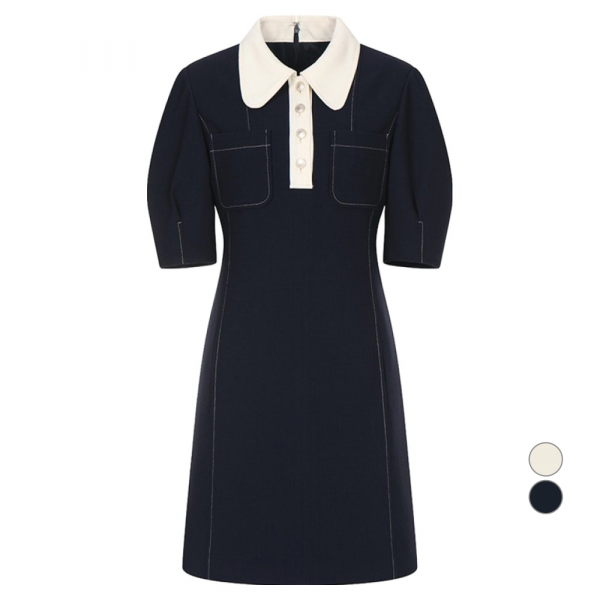 올리브데올리브 여성용 라운드 배색 카라 슬림핏 미니 원피스[69,540원]